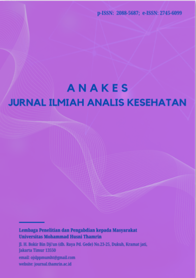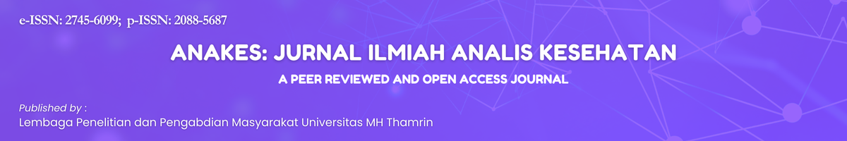 Anakes :Â Jurnal Ilmiah Analis Kesehatan allows readers to read, download, copy, distribute, print, search, or link to the full texts of its articles and allow readers to use them for any other lawful purpose. The journal allows the author(s) to hold the copyright without restrictions. Finally, the journal allows the author(s) to retain publishing rights without restrictions Authors are allowed to archive their submitted article in an open access repository Authors are allowed to archive the final published article in an open access repository with an acknowledgment of its initial publication in this journal.